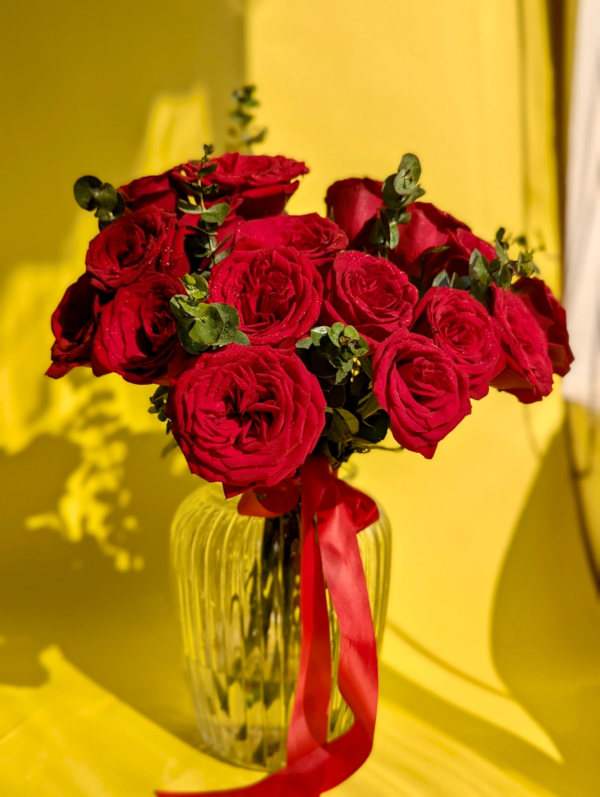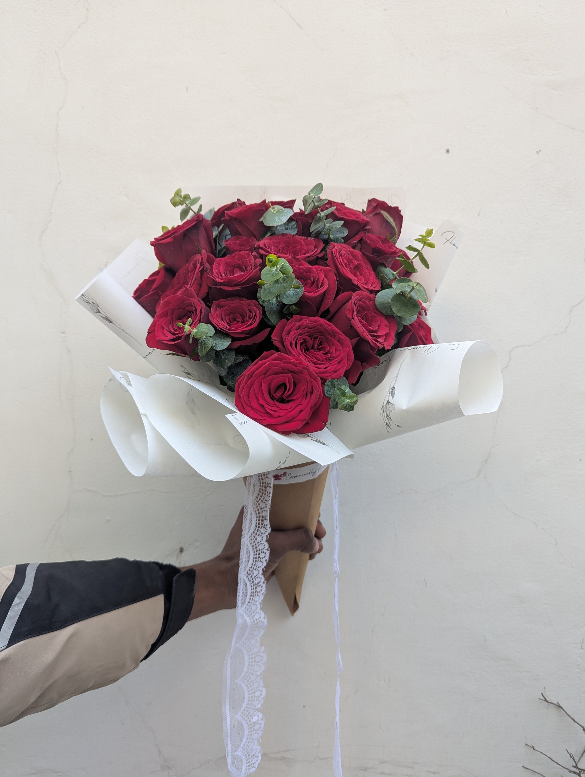 Deep red roses wrapped in vintage-style — made for love, apologies, anniversaries, or simply letting someone know they’re everything.