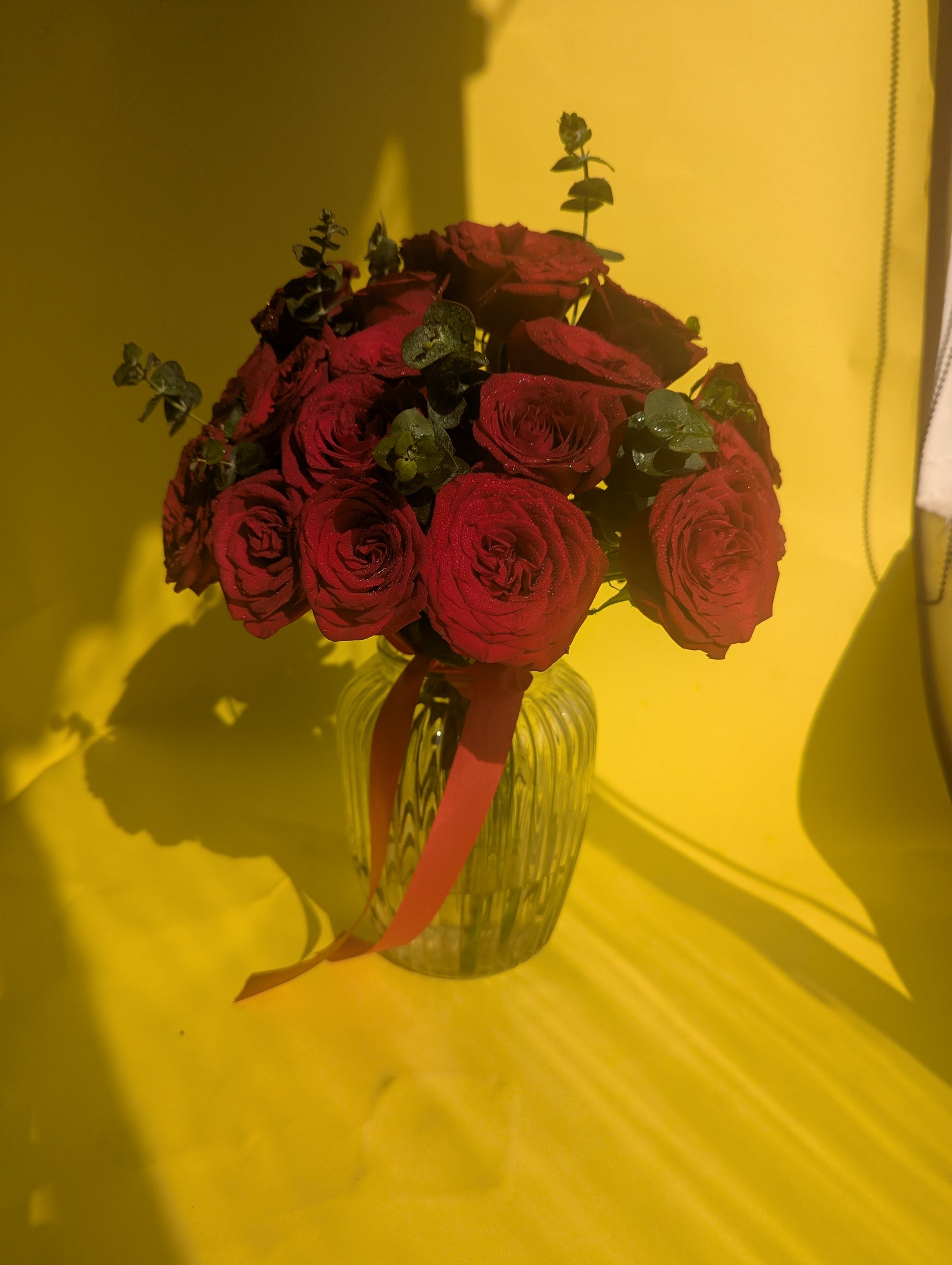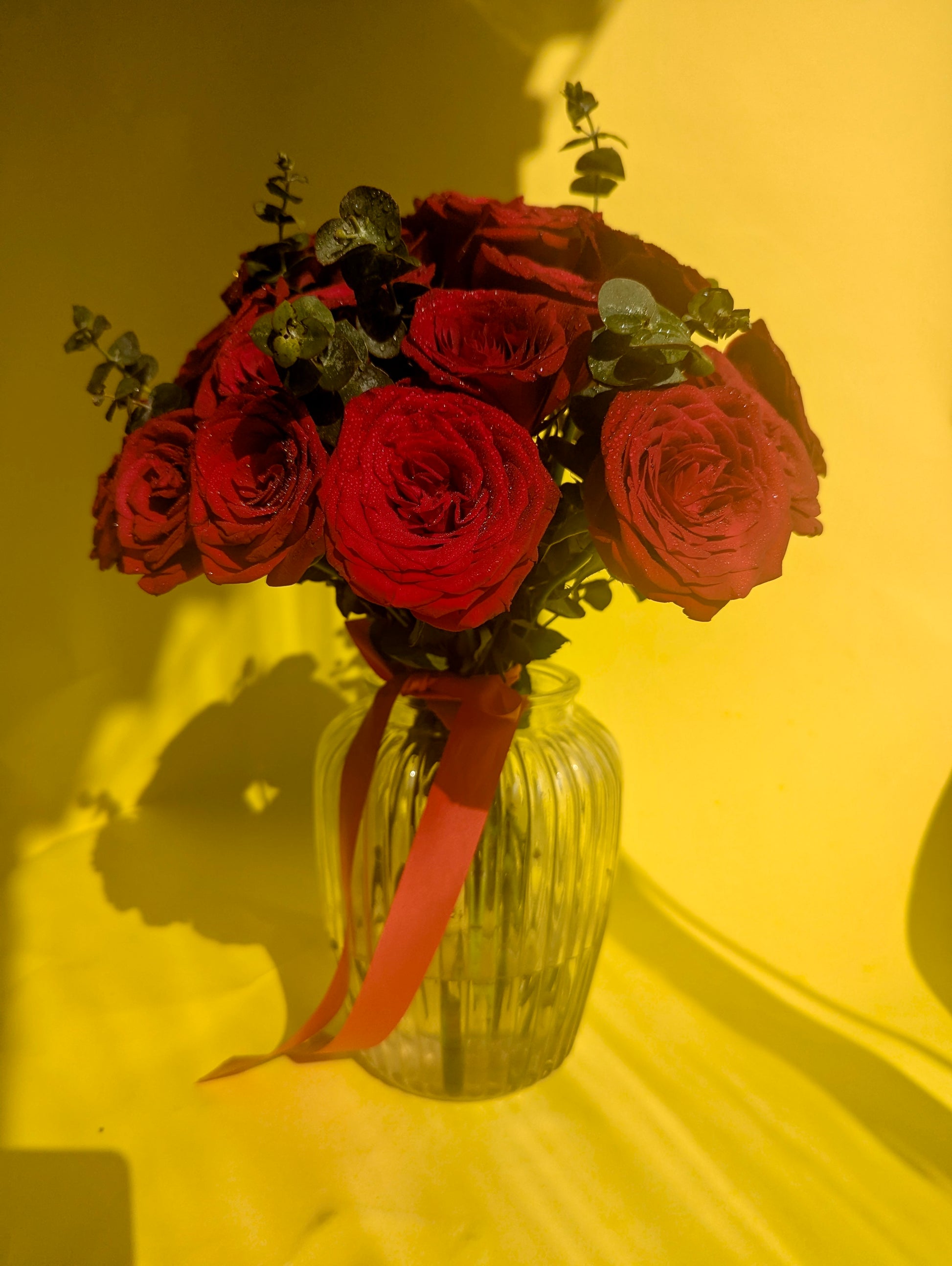 Fresh, long-stemmed red roses, hand-wrapped in elegant paper. Always plastic-free, always made to order.