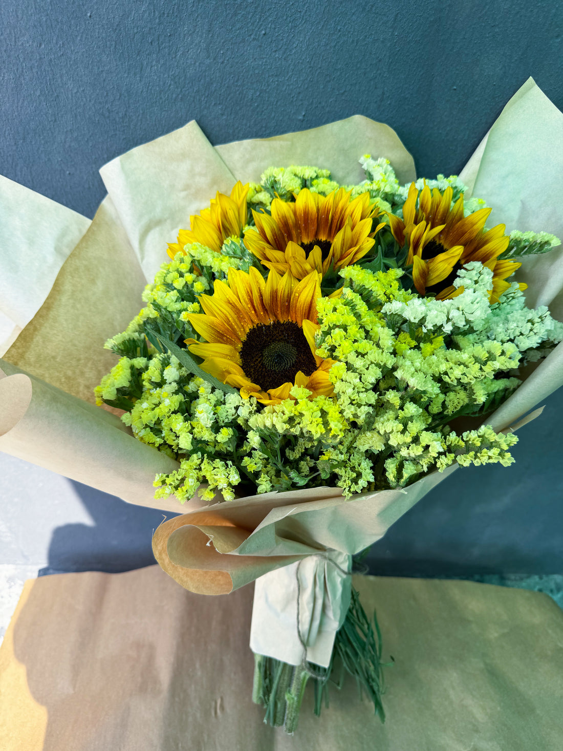 This medium bunch is a symphony of radiance and positivity, where the golden sunflowers stand...