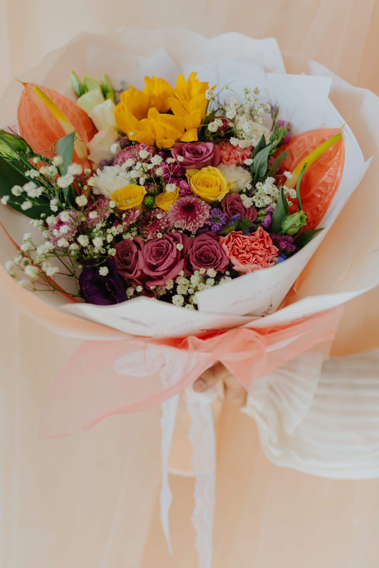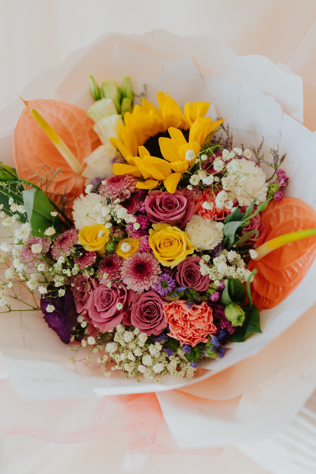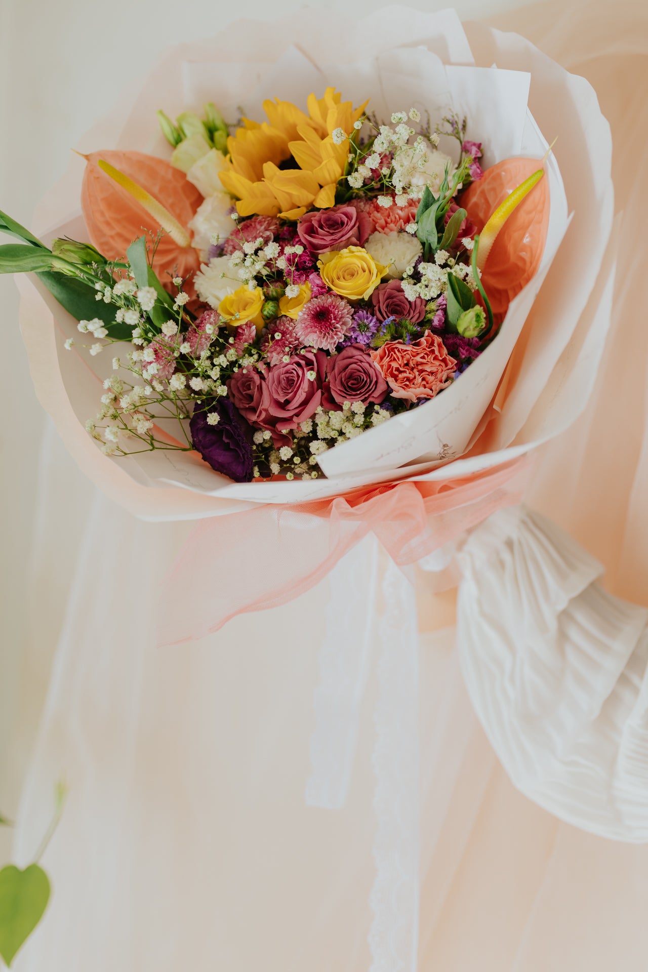 This bouquet is not just a bunch of flowers; it's a celebration of vibrant spirit, perfect for brightening your day or gifting to share the happiness.