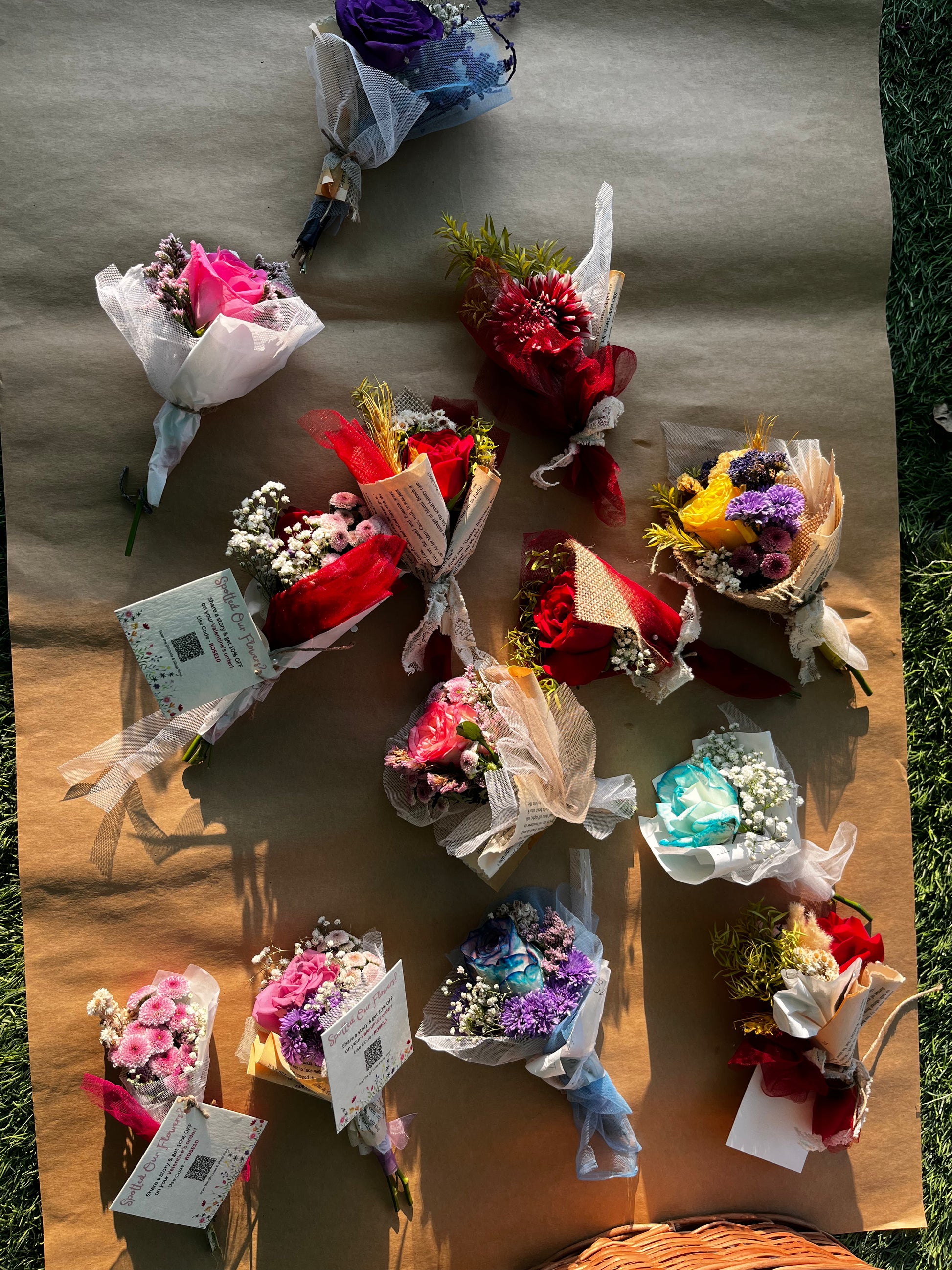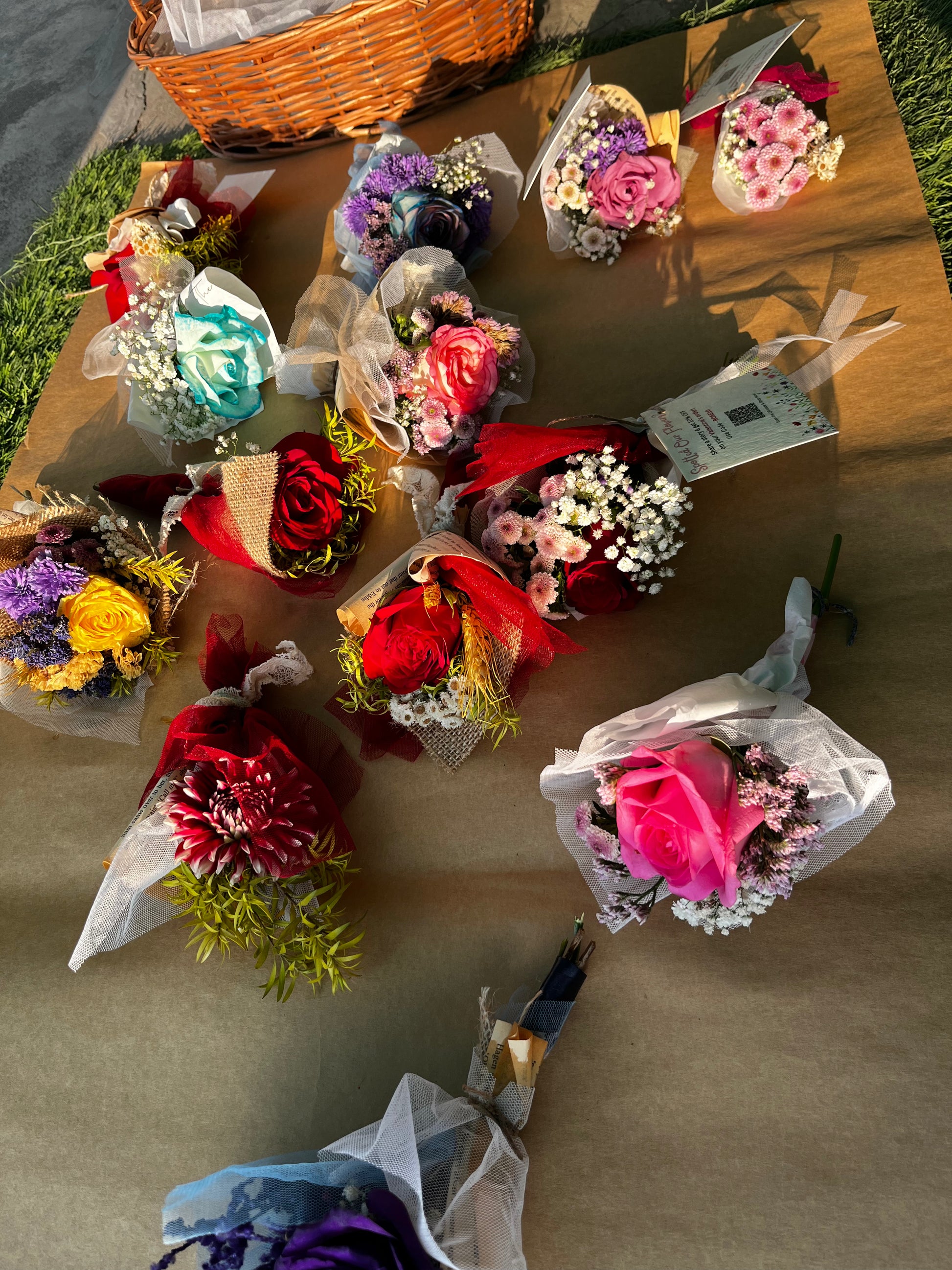 A set of three petite bunches made with fresh, seasonal flowers — perfect as sweet little gifts, table accents, or daily pick-me-ups. Each mini bouquet is hand-tied, thoughtfully curated, and wrapped in our signature plastic-free style.